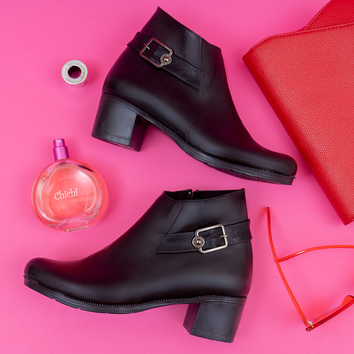 نیم بوت زنانه سگک دار مشکی مدل Dina