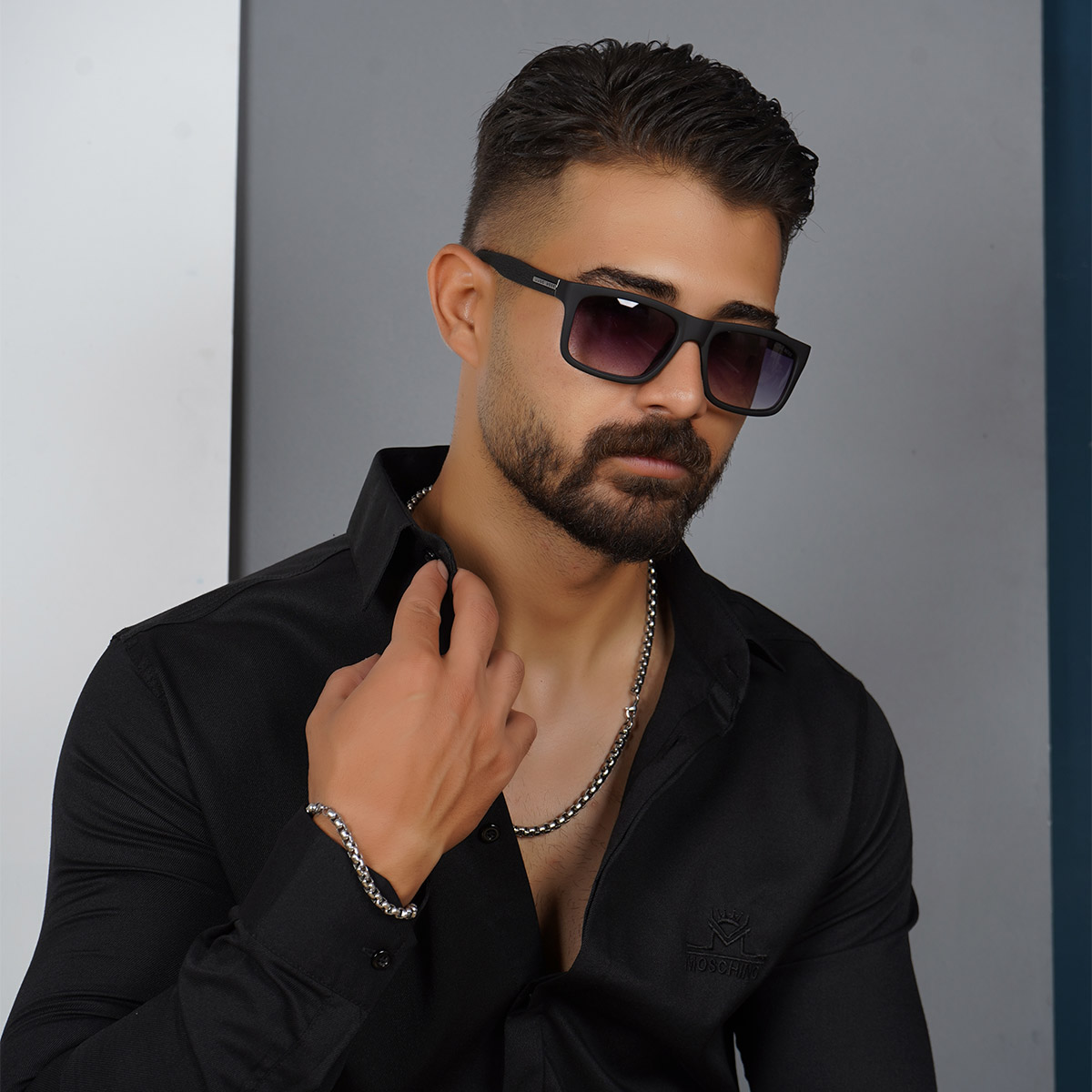 عینک مردانه مشکی صفحه بنفش مدل Hugo