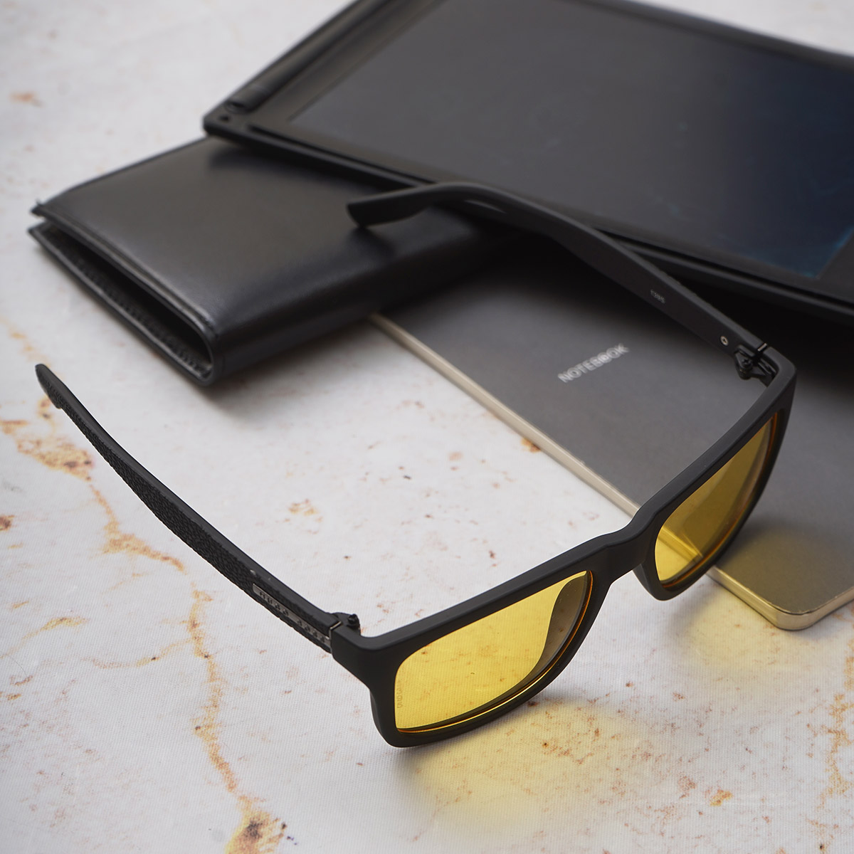 عینک مردانه مشکی صفحه زرد مدل Hugo