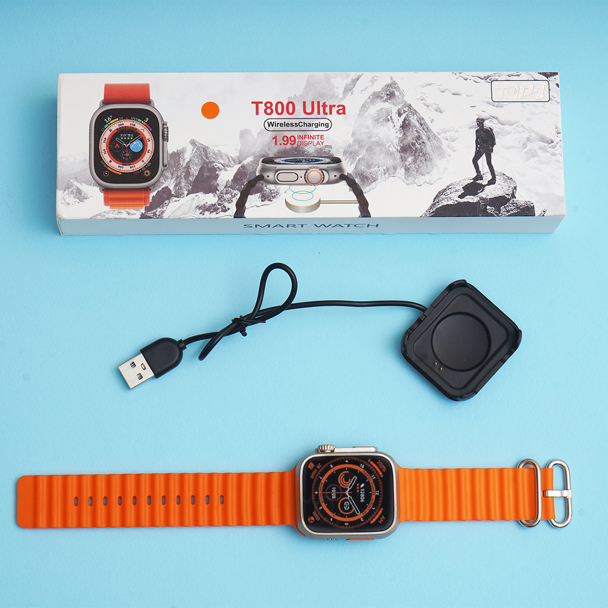 T800 Ultra یکی دیگر از کلون های جدید اپل واچ اولترا 2022 است که با قیمت بسیار ارزان در بازار موجود است. این یک ساعت هوشمند اسپرت است که طراحی مربعی با صفحه نمایش LCD بزرگ 1.99 اینچی دارد و به چندین ویژگی از جمله نمایشگر ضربان قلب، مانیتور اکسیژن خون SPO2، حالت های Multisport، ضد آب IP67 و پشتیبانی از تماس بلوتوث مجهز است این ساعت هوشمند مربع شکل و به ابعاد 4/5x38/5x1/4 است وزن آن 50 گرم موجود میباشد نمایشگر lcd واندازه صفحه نمایش 1.99 اینچ و وضوح صفحه نمایش 250x285 پیکسل است وبا سیستم عامل Android و IOS سازگار است.