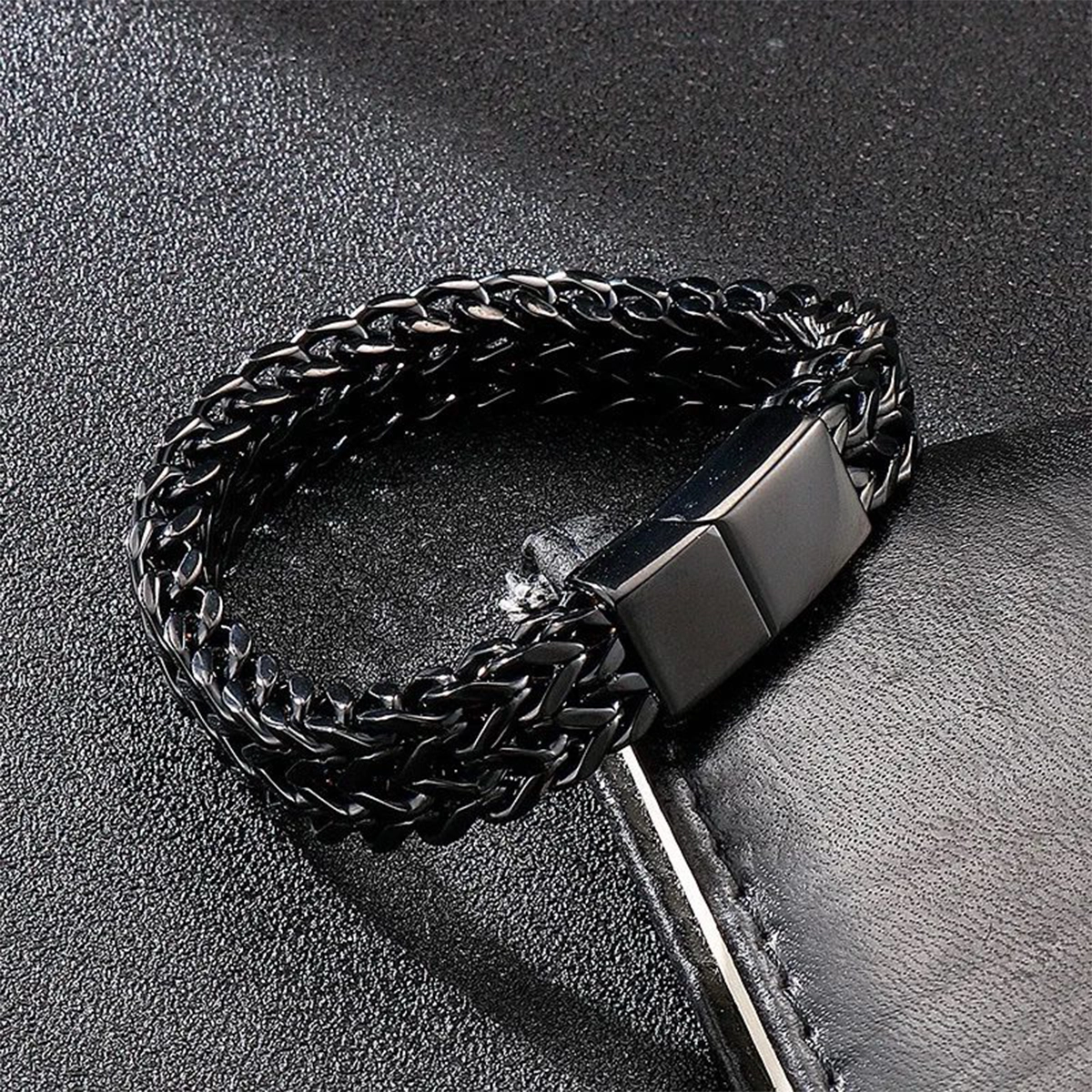 دستبند زنجیری ضخیم مشکی مردانه مدل H23 جنس : استیل طول: حدود 24 سانتیمتر قطر: حدود 10 میلیمتر