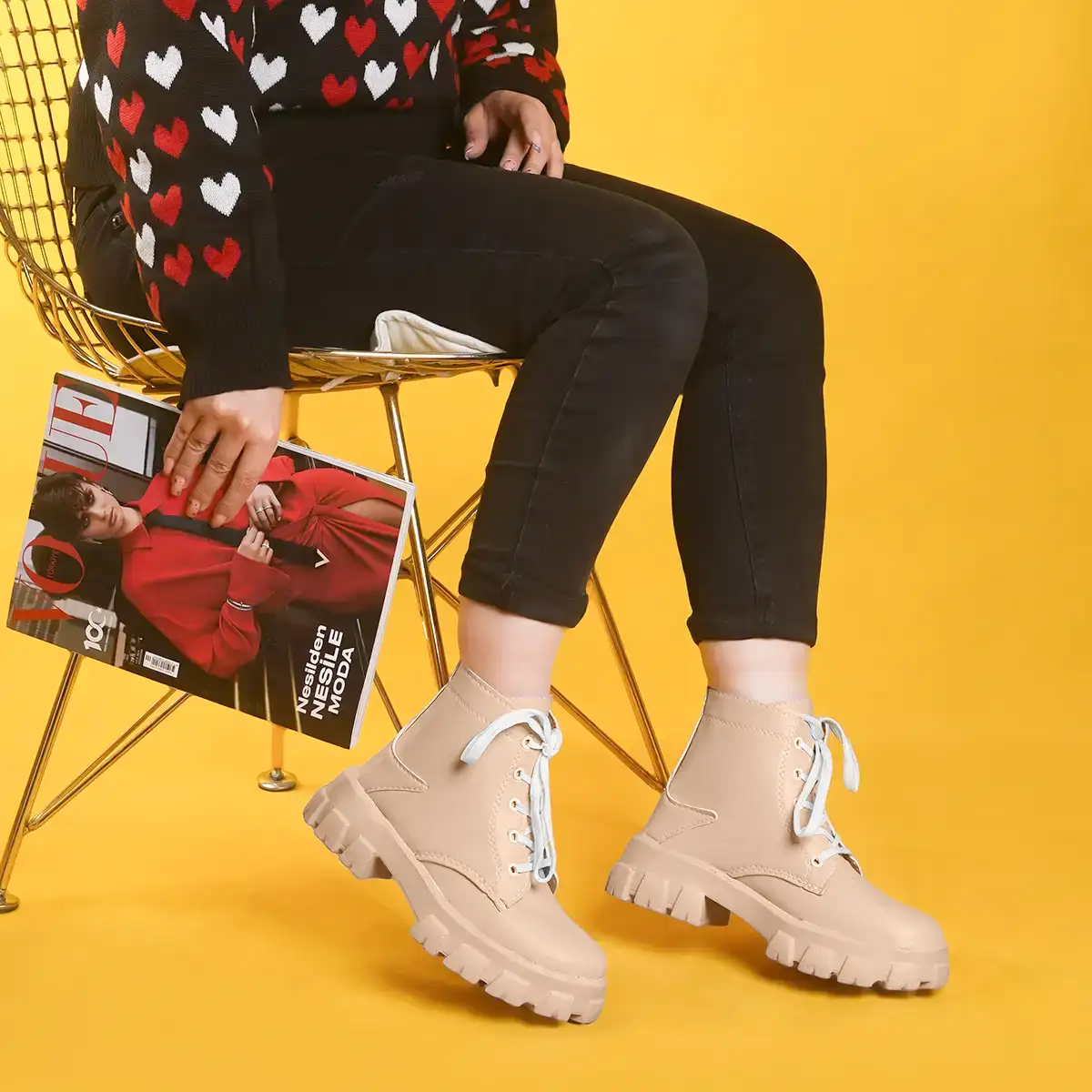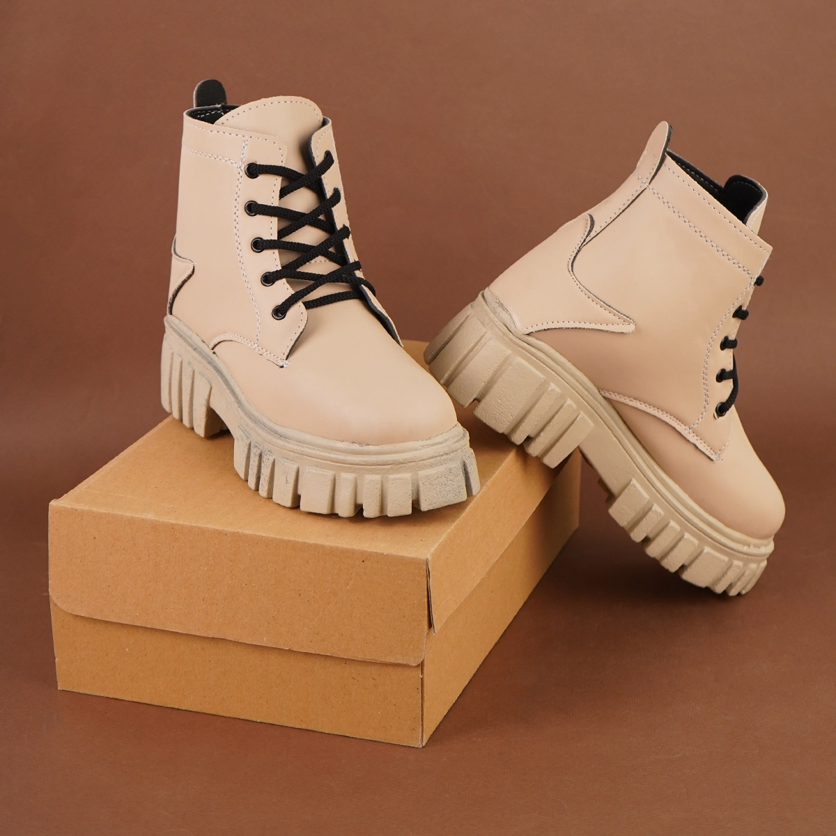 نیم بوت زنانه کرم مدل Roxana جنس رویه : چرم مصنوعی جنس زیره : pu کفی پرسی سایز : 37 الی 40